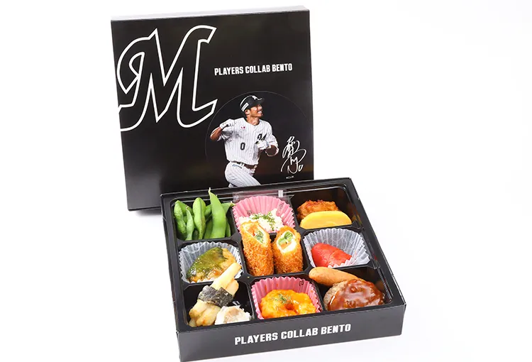 佐藤選手の好きな唐揚げを5個も入った「チキンBOX」。オシャレな容器でハワイアンをイメージしたランチボックスです!
