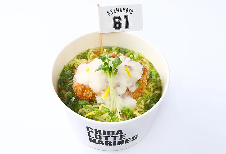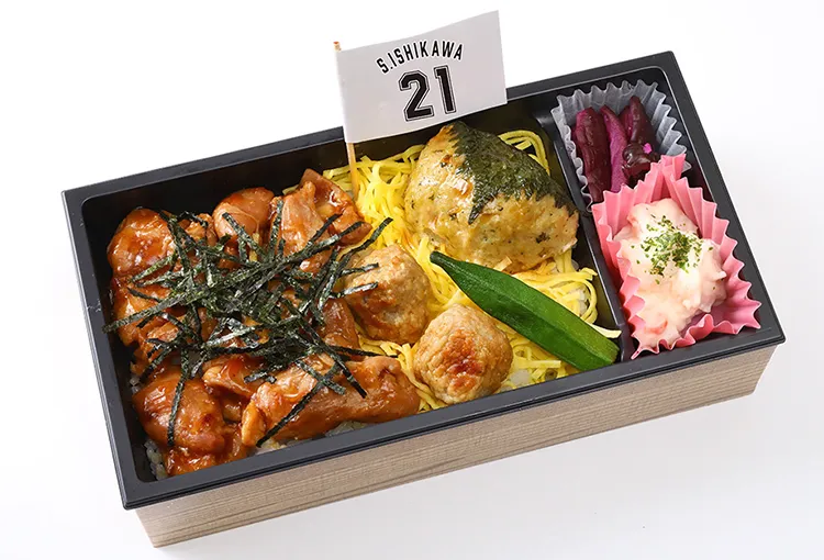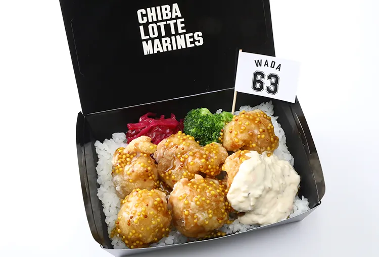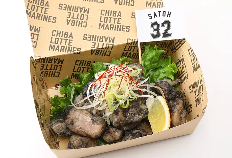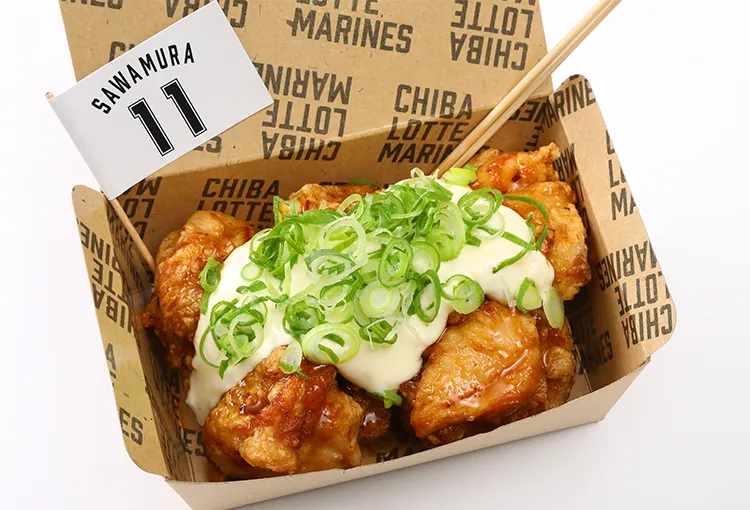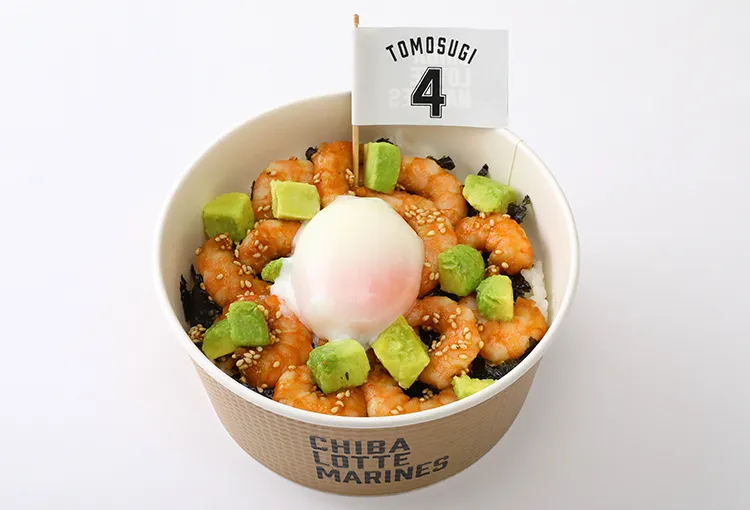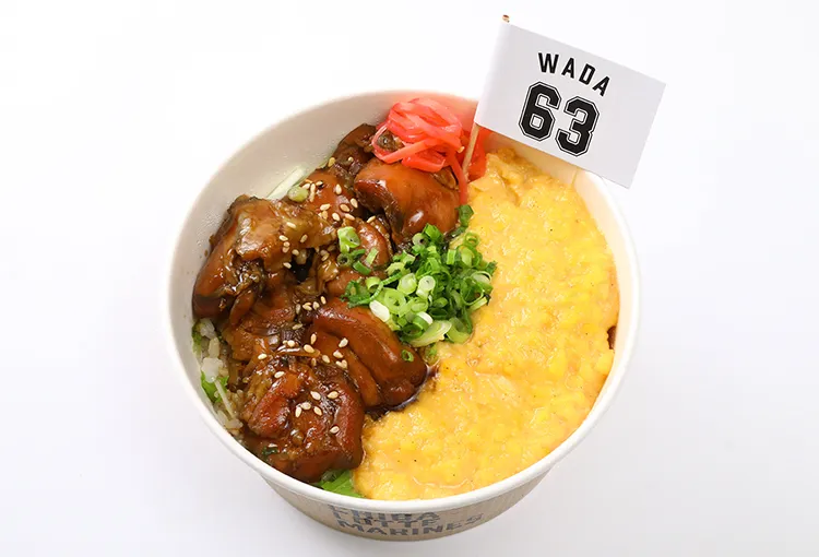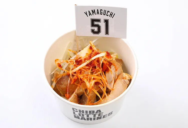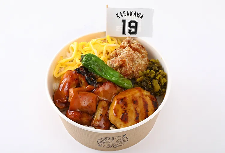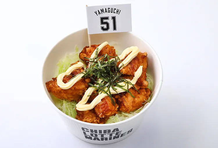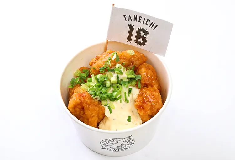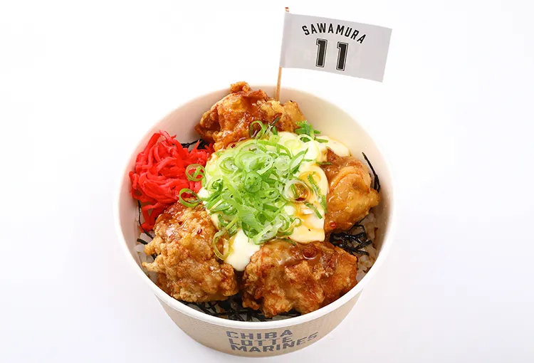 鈴木選手の力強さと美味しさを詰め込んだ特製丼ぶり。ジューシーな唐揚げをたっぷり乗せ、スタミナ満点でファンの皆さんを全力応援!柚子胡椒ソースが食欲をそそります!