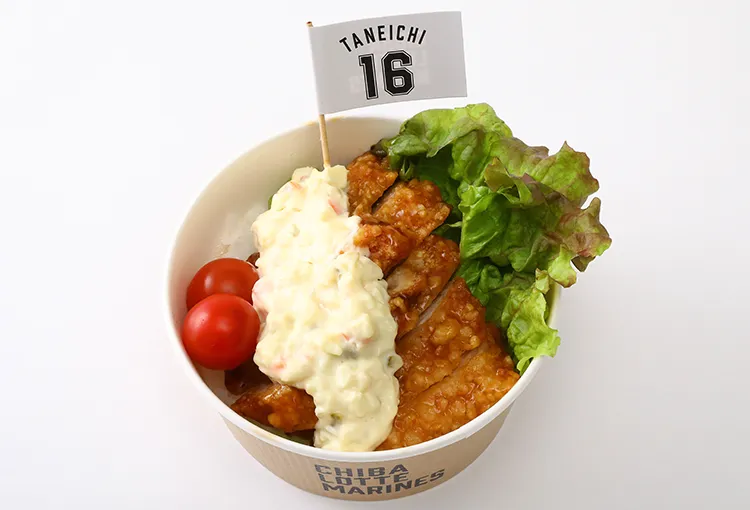 鈴木選手が好きなチキン南蛮をボリューム感たっぷりに仕上げたメニューです。揚げられたチキンに特製南蛮ソースを絡め、具沢山のタルタルソースをたっぷりとトッピング!