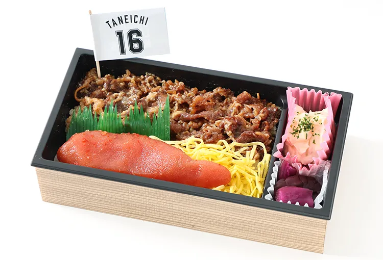 藤原選手の出身、大阪生まれの焼肉屋「大阪焼肉ふたごや」とのコラボメニュー。藤原選手の大好きな牛ハラミをメインにしつつ、大人気のカルビを2種類添えた、贅沢な一品です。