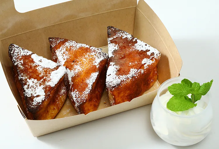 女性に人気のフレンチトーストをカットして可愛いマーくんカップに入れました!食べやすいサイズにカットしてメープルシロップと粉糖で仕上げたスイーツです。