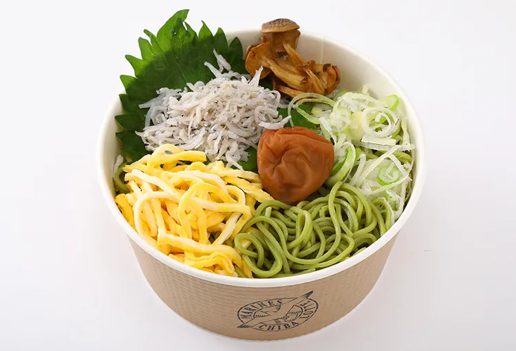 柔らかなとり天と、シャキシャキ食感の新鮮野菜を彩り豊かに盛付けました。さっぱりとしたすだちの香りが全体を引き締め涼感をプラス。暑い日でも食べられる心も体もリフレッシュできる冷製うどんです!