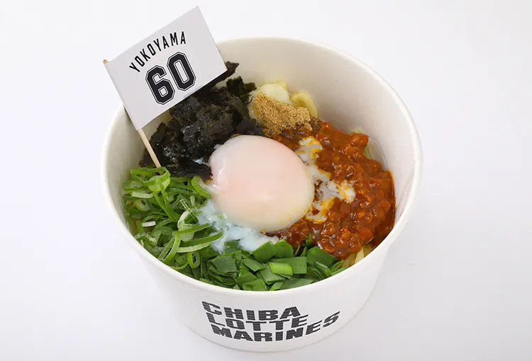 しっかり濃いめの肉味噌とたっぷりの青ネギで、岩下選手の好物・担々麺をイメージした塩焼きそばです。シャキシャキの岩下の新生姜がポイントです。