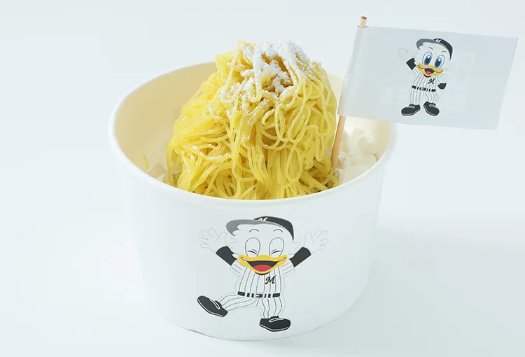 中村選手の好きなたらこパスタにシーフードをトッピングし、具沢山に!和風のだしとバター風味で味付けのパスタをカップをフリフリ良く混ぜてお召し上げりください。