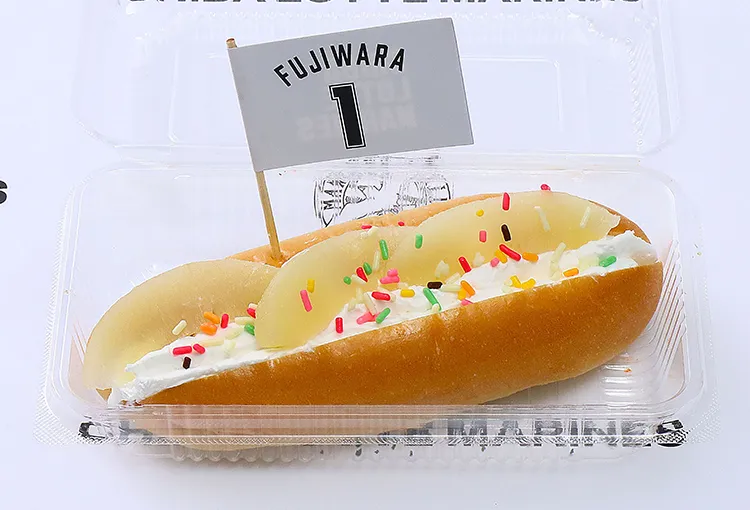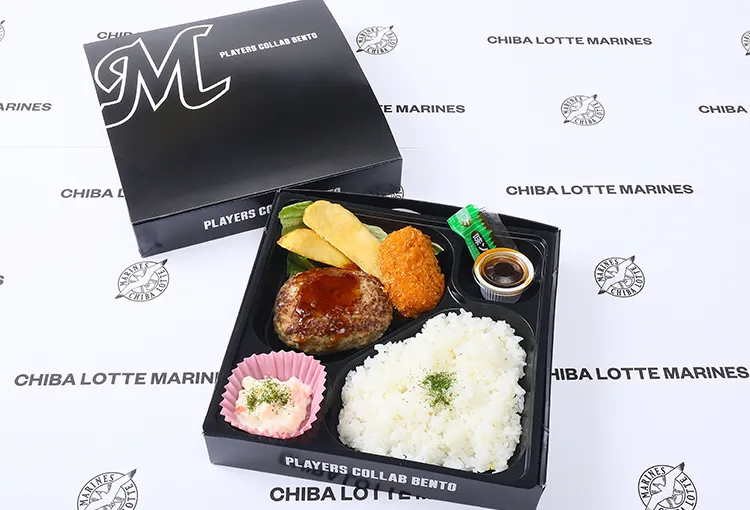 藤原選手の“好き”をぎゅっと詰め込んだ応援グルメ!ジューシーハンバーグに、俵型カニクリームコロッケ。ポテトも添えて、観戦しながら楽しめるランチでBOXです。