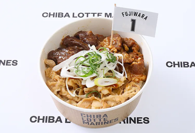 ボリュームもインパクトもホームラン級!がっつり食べたいときにピッタリのボリューム満点丼です。一口食べれば、藤原選手のように全力で駆け抜けたくなるパワーがみなぎる!藤原選手のエネルギーを感じる、ファン必食のスペシャル丼!