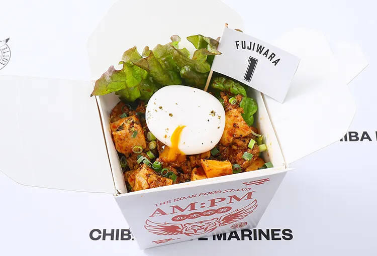 藤原選手をイメージして製作した本格麻婆豆腐丼!自家製ラー油が決め手の痺れる辛さが食欲をそそります。藤原選手の本気を感じるこの逸品で、観戦の活力をブーストしてください!