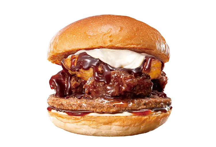 牛肉100%パティに、デミグラスソースをベースに、ごろっとしたビーフとホクホクのポテトを加えた濃厚でコク深いビーフシチューを合わせ、4種のチーズソースなどとともにふんわりもっちり食感のバンズで挟んだ、食べ応え抜群なバーガーです。