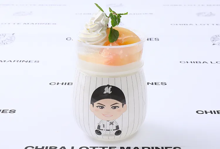 藤原選手が好きな桃を大きめにごろっとカットしパンナコッタへトッピングしたバランス良い甘さに調和されたメニューです。専用のカップが付いてきます。