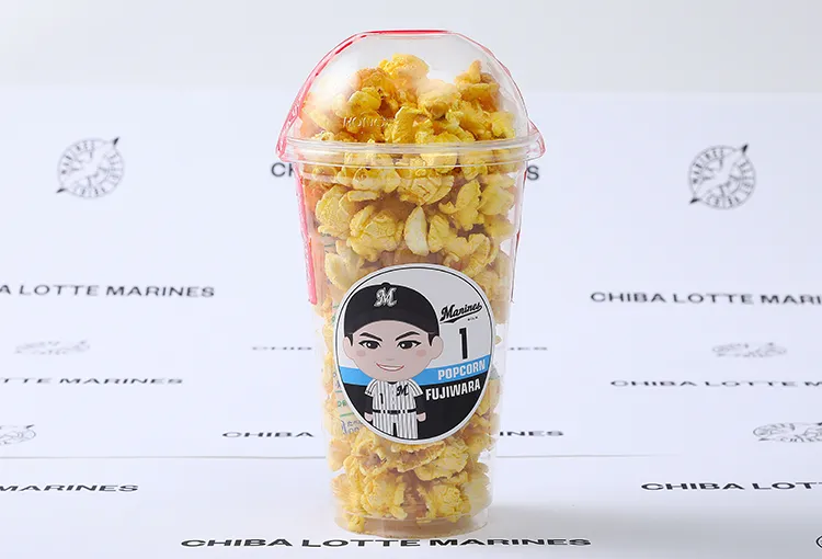 はじけるおいしさ、球場グルメにピッタリ!!一度食べたら止まらな~い、藤原選手の「絶品旨塩ポップコーン」みんなでシェアして、笑顔で笑顔ではじけよう!