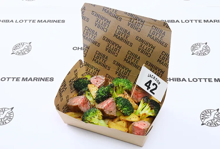 プライムビーフを贅沢に使い、ジャクソン選手の髪型をイメージしたブロッコリーにポテトを加えた、ジャーマンポテトならぬ「ジャクソンポテト」です