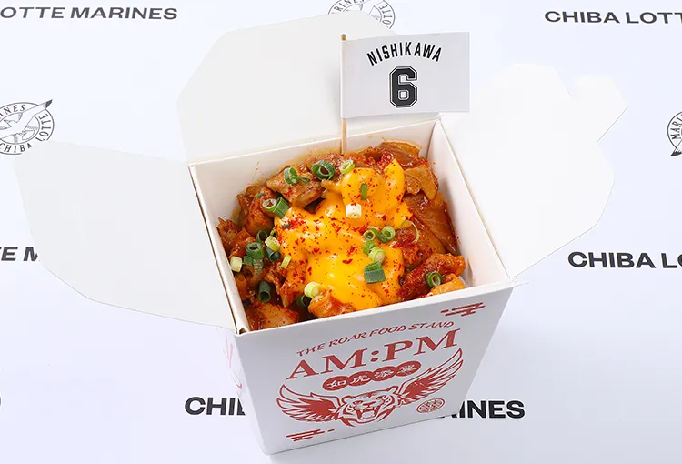 韓国料理好きの西川選手をイメージしたチーズソースたっぷりの旨辛チーズタッカルビ丼は、攻走守3拍子揃った西川選手の力強いプレーを連想させます。この一食で、観戦に元気を注入し、マリーンズへの熱い応援を届けましょう!