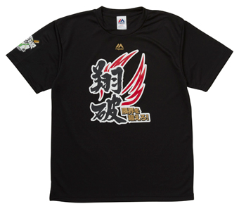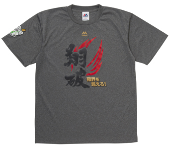 マリーンズの2017年スローガン「翔破~限界を超えろ!!~」を表面に、石垣キャンプのロゴが右袖にプリントされた、新ユニフォーム・サプライヤー マジェスティック社製のTシャツです。ブラック、グレーの2種類をご用意しています。