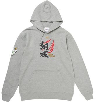 マリーンズの2017年スローガン「翔破~限界を超えろ!!~」を表面に、石垣キャンプのロゴが右袖にプリントされた、新ユニフォーム・サプライヤー マジェスティック社製のパーカーです。Tシャツ同様、ブラック、グレーの2種類をご用意しています。