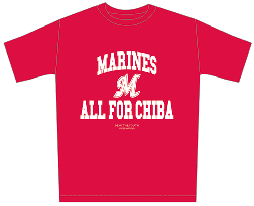 4月15日(土)来場者先着2万名にアパレルブランド「BEAUTY&YOUTH UNITED ARROWS」デザインのマリーンズTシャツを配布します。当日はマリーンズTシャツを着てALL for CHIBAを盛り上げよう!!