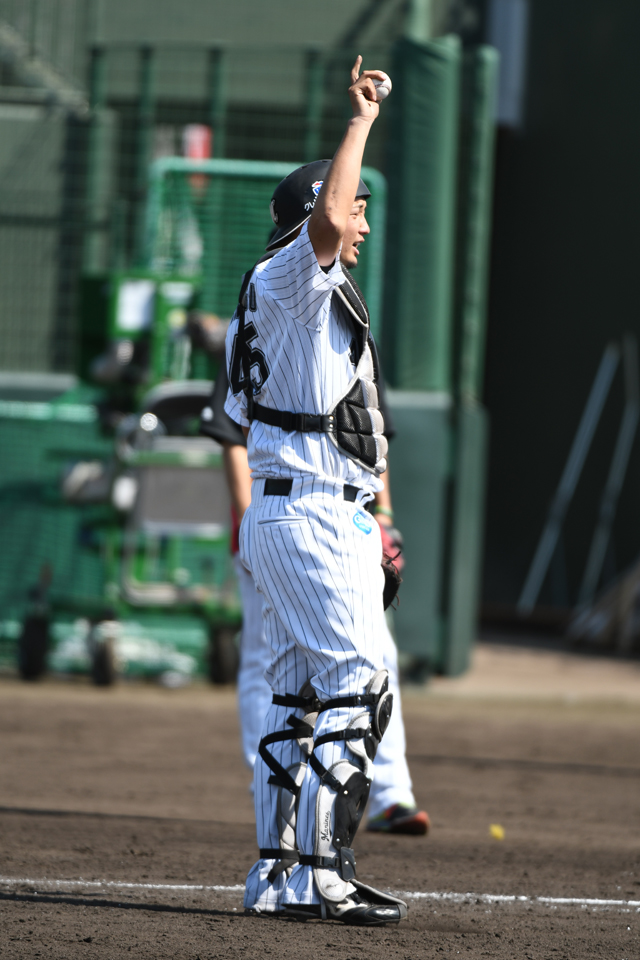 俊足を飛ばしてランニングホームランを成立させた加藤選手や、気迫のヘッドスライディングでユニフォームを真っ黒にした江村選手。プレーの合間には西野投手や田村選手がルーキーの佐々木投手と土肥投手にアドバイスを送る場面もあり、ユーミーやランダウンプレーなど、キャンプ中の取り組みが凝縮された練習となりました。