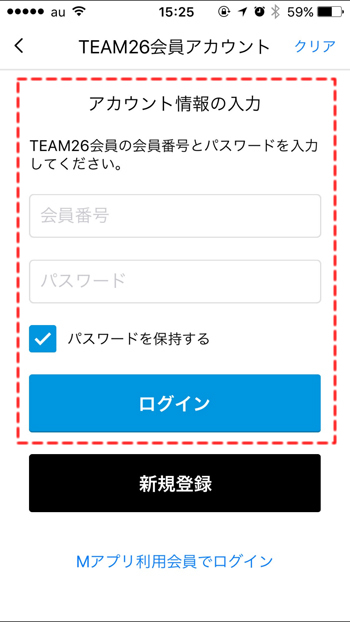 Mアプリ→「チケット」→「TEAM26会員の方」→「TEAM26会員番号」をご入力ください。