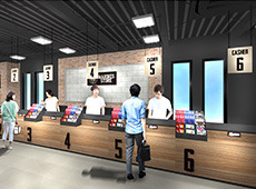 ミュージアム店は、売り場面積が約2倍に拡大し、ユニフォーム、キャップ、応援グッズ、キャラクターグッズなど、商品はカテゴリーごとにディスプレイされています。売り場面積拡大に併せて、お会計スペース(レジ)も従来の2倍に拡大しています。試合開始直前のレジ前の混雑、レジ待機列の解消を図り、スムーズにスタジアムへご案内します。