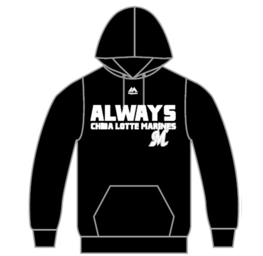表にマリーンズのロゴ、裏に選手の背番号と名前がプリントされた人気アイテムが、パーカーとして新登場!!まだまだ肌寒いオープン戦の観戦のお供に重宝する長袖のパーカー、スタジアムのみならず街中でも活躍まちがいなしです。