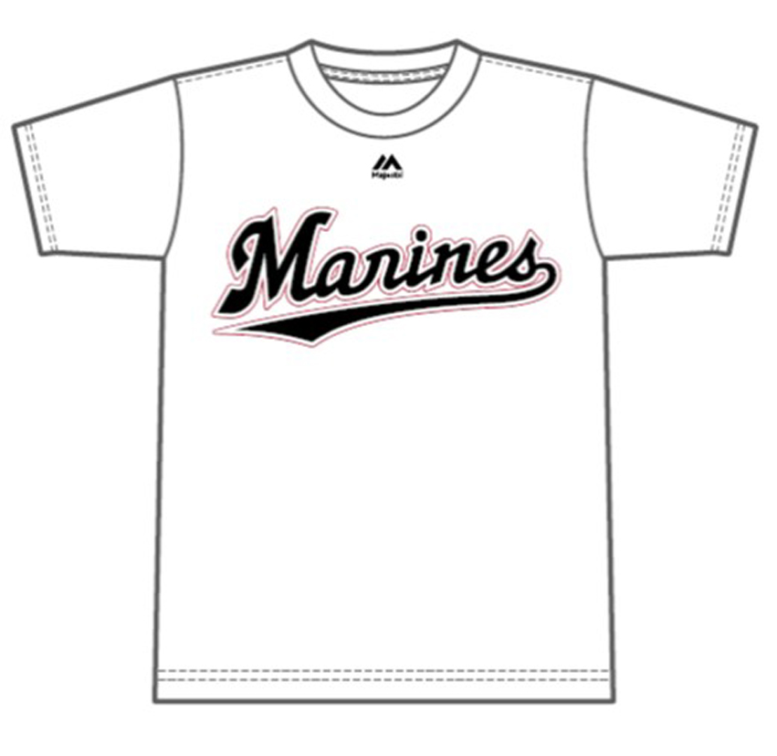 表にマリーンズのロゴ、裏に選手の背番号と名前がプリントされた人気アイテムがマジェスティック社製にリニューアル。鈴木選手や福浦選手など主力選手に加え、2016年ドラフト1位・佐々木投手をラインナップした、全16選手のTシャツを販売します。