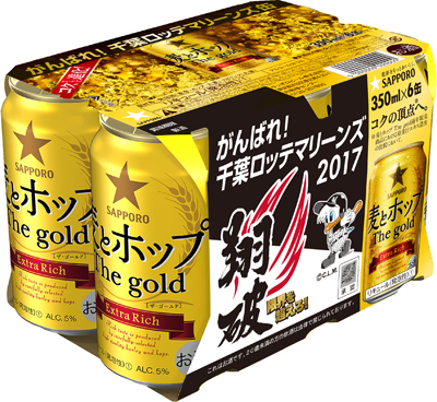 サッポロビール(株)は、千葉ロッテマリーンズの日本一を祈念し、麦とホップ The gold「2017がんばれ!千葉ロッテマリーンズ缶」を、3月28日(火)に数量限定発売します。