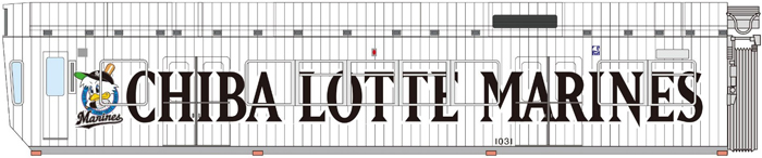 「マリーンズ号」は、ラッピングを車両の内外装に施したフルラッピング仕様となり、車内広告枠も全て千葉ロッテマリーンズ仕様にするなど、その名の通り千葉ロッテマリーンズ尽くしの列車となっています。