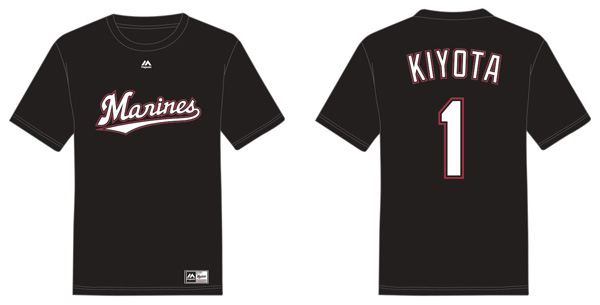表にマリーンズのロゴ、裏に選手の背番号と名前がプリントされた人気アイテムがマジェスティック社製にリニューアル。鈴木選手や福浦選手など主力選手に加え、2016年ドラフト1位・佐々木投手をラインナップしたTシャツを販売します。