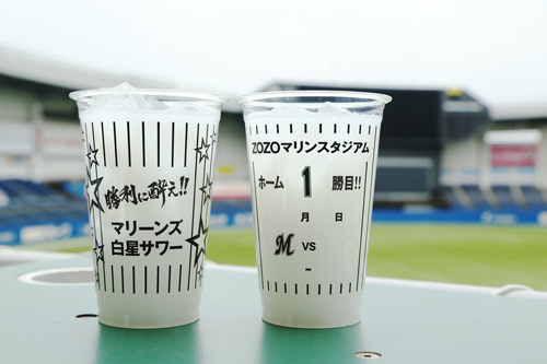 | ご提供方法 | 勝利した日のデータを売店のクルーが手書きで記載させていただいた上でサワーを注いでご提供いたします。マリーンズ白星サワーと合わせて、ZOZOマリンでのトータル勝利数を表す数字のシールをお渡しいたしますので、お客様ご自身でカップにシールを張り付けていただきますようお願いします。 |