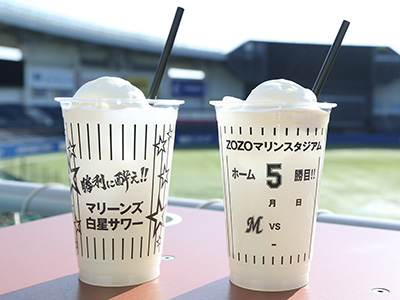 2017シーズンからZOZOマリンでマリーンズが勝利した日の試合終了後にだけ販売している「マリーンズ白星サワー」ですが、お子様も飲める白星ドリンクを販売して欲しいとのお声を多数いただきましたので、5月5日(金・祝)より「マリーンズ白星ソーダ」を販売します。マリーンズの勝利に、また勝ち試合の観戦記念に、是非「マリーンズ白星サワー(ソーダ)」で勝利を祝ってください!!
