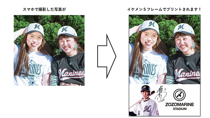 ハッシュタグ「#ZOZOマリンスタジアム」をつけてSNS(twitter / instagram / WEARいずれか)に写真をアップすると、オリジナルフレームでプリントする事ができる、フォトプリンターが登場!! さらに、当たりデザインのフレームがでると試合後イベント「選手からのお花プレゼント」に参加できるチャンス!! お見逃しなく!!