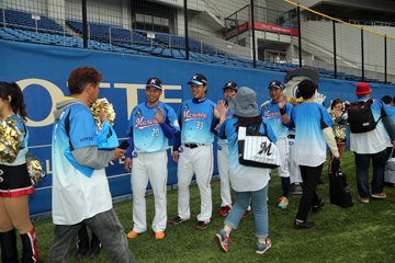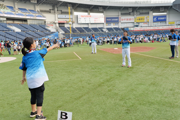 試合終了後、グラウンドで選手とキャッチボールができます!!