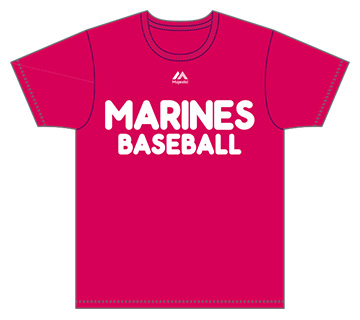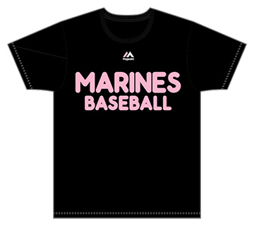 ポップなフォントでMARINES BASEBALLとデザインされたTシャツをピンク(白文字)、ブラック(ピンク文字)の2種類販売します。