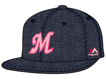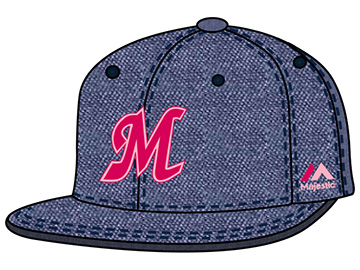 デニム地にピンクのマリーンズロゴが配置されたカジュアルなキャップです。ダークブルー、ライトブルーの2色をご用意しています。