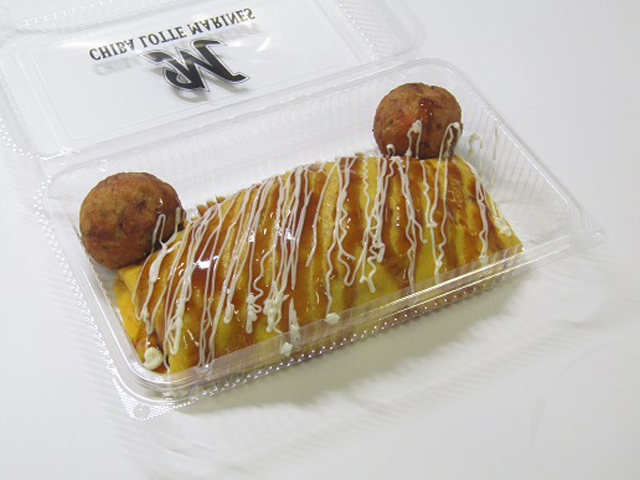 オム焼きそばに黒いソースをかけ、阪神カラーをイメージしました。大阪名物たこ焼きで虎の耳を模して「かわいい虎の子」イメージに仕上げました。