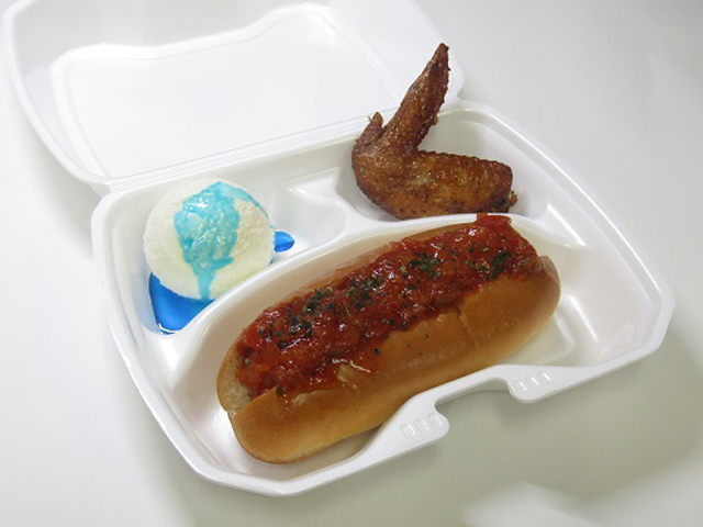 チリ(C)ドッグ(D)と手羽先の唐揚げ+ブルーアイスを組み合わせました。