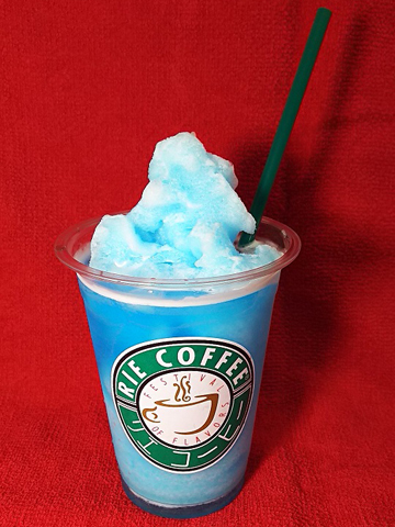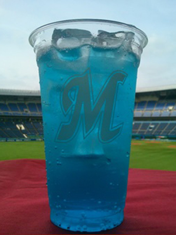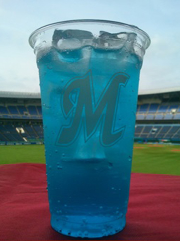 チームカラーをイメージさせる爽やかな青色のフローズンドリンクです!! 味はラムネで、子供の頃に食べたアイスを思い起こすようなどこか懐かしい味です。