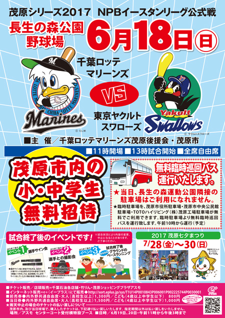 6月に千葉県市原市、船橋市で開催するイースタンリーグ公式戦ではサイン会やベースランニングなど様々なイベントを行います!また6月18日(日)に開催する茂原市長生の森公園野球場の開催情報をお知らせします。