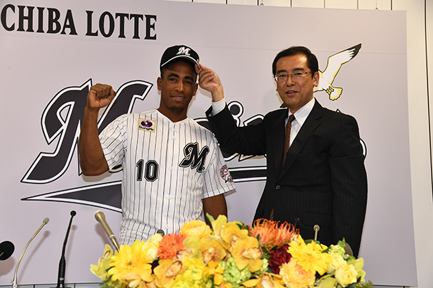 「ロエル・サントスです。マリーンズでプレーする機会をいただけて感謝しています。まだ時差ボケがありますが、早く体調を100%に戻して、自分ができることをどんどんやっていきたいです。早くチームに馴染んで、チームの勝利に貢献していきたいと思っています。よろしくお願いします。」
