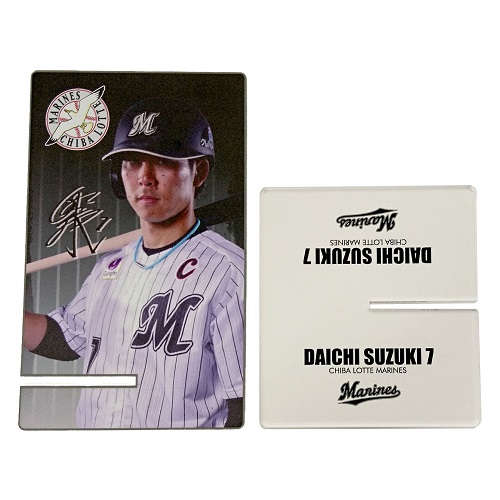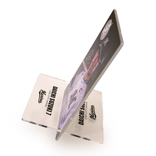 表面に選手の写真、裏面はミラー仕様のアクリル製スマホスタンドが新発売。オフィスのデスクやご自宅で充電する際に便利なアイテムです。是非ご利用ください。