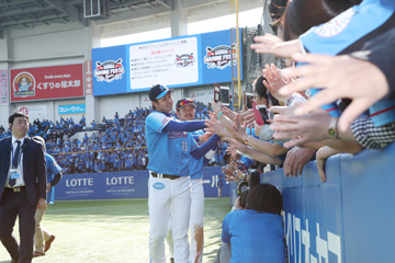 ヒーローインタビュー後に1塁側フィールドウイング・シートにて行うハイタッチを、マリンフェスタの日に限り3塁側フィールドウイング・シートでも行います!!