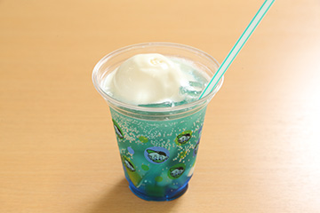 平沢選手の好きなジンジャーエールをベースに、ブルーハワイをミックスして平沢選手の大好きな青色を表現しました。