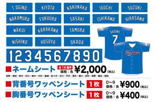 7月30日(日)、マリンフェスタユニフォームの来場者全員配布に合わせ、背ネーム・番号ワッペンの販売と、その場で入れられる圧着サービスイベントを開催します!! 是非、この機会にユニフォームをお持ちの上、お好きな選手のネーム&番号を入れて応援してください!!