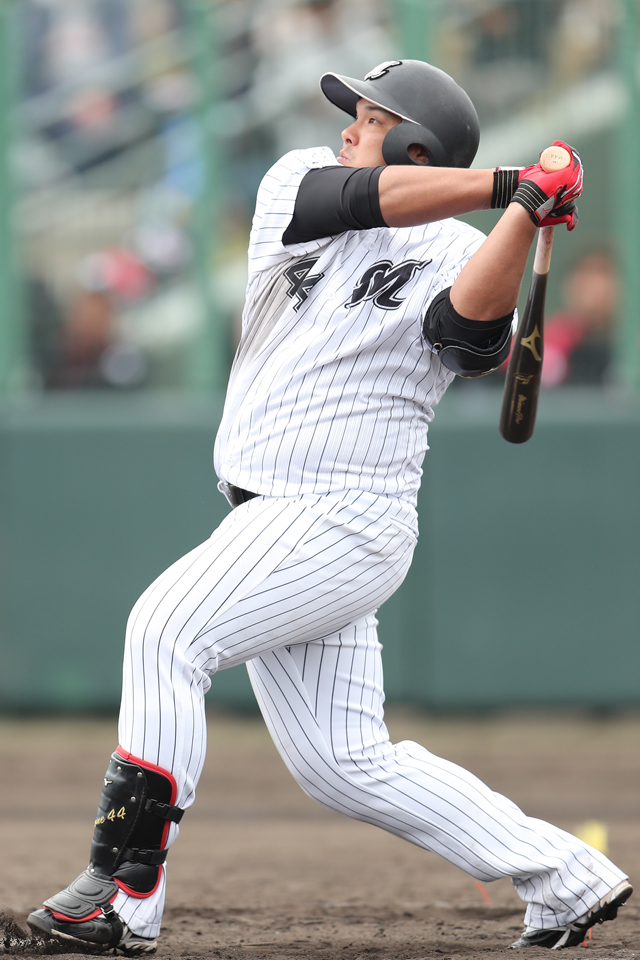 先発全員安打で12安打10得点を記録した打線は、井上選手が本塁打と適時打で2安打3打点。清田選手・中村選手・細谷選手・加藤選手も適時打を放ちました。また、初回に加藤選手が2度の好守でピンチを救うと、三木選手と藤岡裕選手も守備でアピール。大歓声の後押しを受けながら、マリーンズが10-9で勝利を収めました。