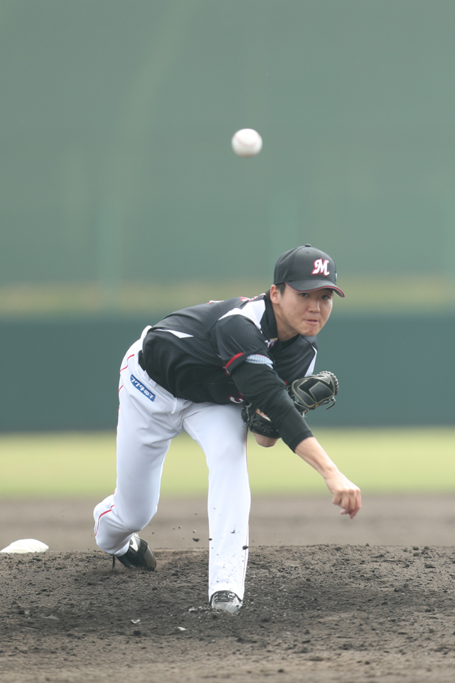 両チームの投手陣が得点を与えぬ展開が続き、試合が動いたのは5回のマリーンズの攻撃。先頭の細谷選手が二塁打で出塁すると、2死3塁でルーキーの菅野選手が対外試合初安打となる適時打を放ち先制!6回にはペゲーロ選手の併殺ゴロの間に1点を追加し、その後も清田選手の犠飛などで得点を重ねたマリーンズが5-1で連勝を飾りました。