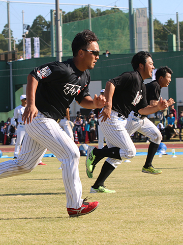 秋季キャンプ3日目から宗接選手が新たに参加。時折強い日差しの中で、選手たちは疲労の中にも充実した表情を多く見せていました。