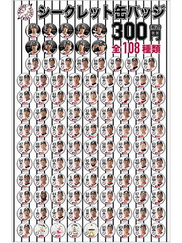 シークレット缶バッジは、2019年マリーンズ所属全選手・監督・コーチ・キャラクターがデザインされ、全部で108種類がラインナップ。誰が出るかは買ってからのお楽しみ!!