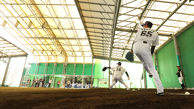 2月8日(土)からの『楽天モンキーズ』との交流戦にも若手投手陣の登板が予定され、監督は「どのメンバーが開幕ローテーションに入ってくるか楽しみにしていますし、試合を含めてどんどんアピールしてもらいたいです」と期待を口にしました。