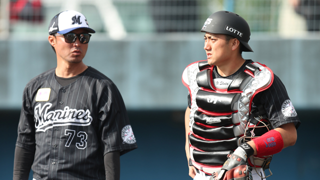 この日のシートノックは、ファーストが細谷選手。サードが三家選手。ショートが平沢選手と茶谷選手。ライトが角中選手と清田選手と和田選手。キャッチャーの育成ルーキー植田選手は、新人合同自主トレに続いて大きな声を響かせ、サインプレーでは金澤コーチが付きっきりで指導していました。細谷選手や田中靖投手らベテランが率先して盛り上げ、江村選手と三家選手はプレー直後に意見交換をする場面もありました。