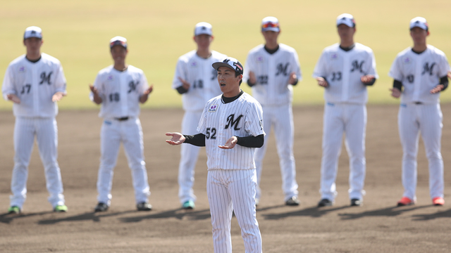 全体練習を終えると、お世話になった石垣市の皆様と共に、メイングラウンドに監督・コーチ・選手・スタッフが大きな輪をつくり、益田選手会長による音頭で手締め。キャンプを支えてくれた方々にお礼を述べた益田投手は「明日から沖縄本島で試合が始まります。課題がたくさん出ると思いますが、ひとつひとつクリアして、いい状態で開幕を迎えられるように頑張っていきましょう。これから先、良いときも悪いときもあると思います。常に前を向いて、元気に明るく皆で頑張っていきましょう」と呼びかけました。