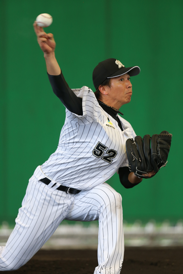 そして、この日大きな注目を集めたのは、このキャンプ初のブルペン入りを果たした益田投手。下半身をしっかり使い、キレのある球を意識しながら38球のストレートを投じました。良いボールと悪いボールがはっきりしていたとしながらも、ここまでは予定通りの調整ができているようです。背中の肉離れにより投球ができなかった去年の1月に比べて、今年のオフは不調もなく、投げることも走ることもできたという益田投手は「去年はタイトルを獲れましたが、“6”という大きな負け数が付いたので、今年はそれを減らすことと、防御率を“1”減らすこと。去年のセーブ王の名に恥じないようにしっかりやりたいです。2年間一軍で戦えたことは自信にはなりましたが、プロで3年やって一人前と言われたこともありますし、今年が勝負の年だと思っています。キャンプでは先頭に立ってピッチャーを引っ張っていけるように頑張りたいです」と、今年にかける熱い思いを話しました。